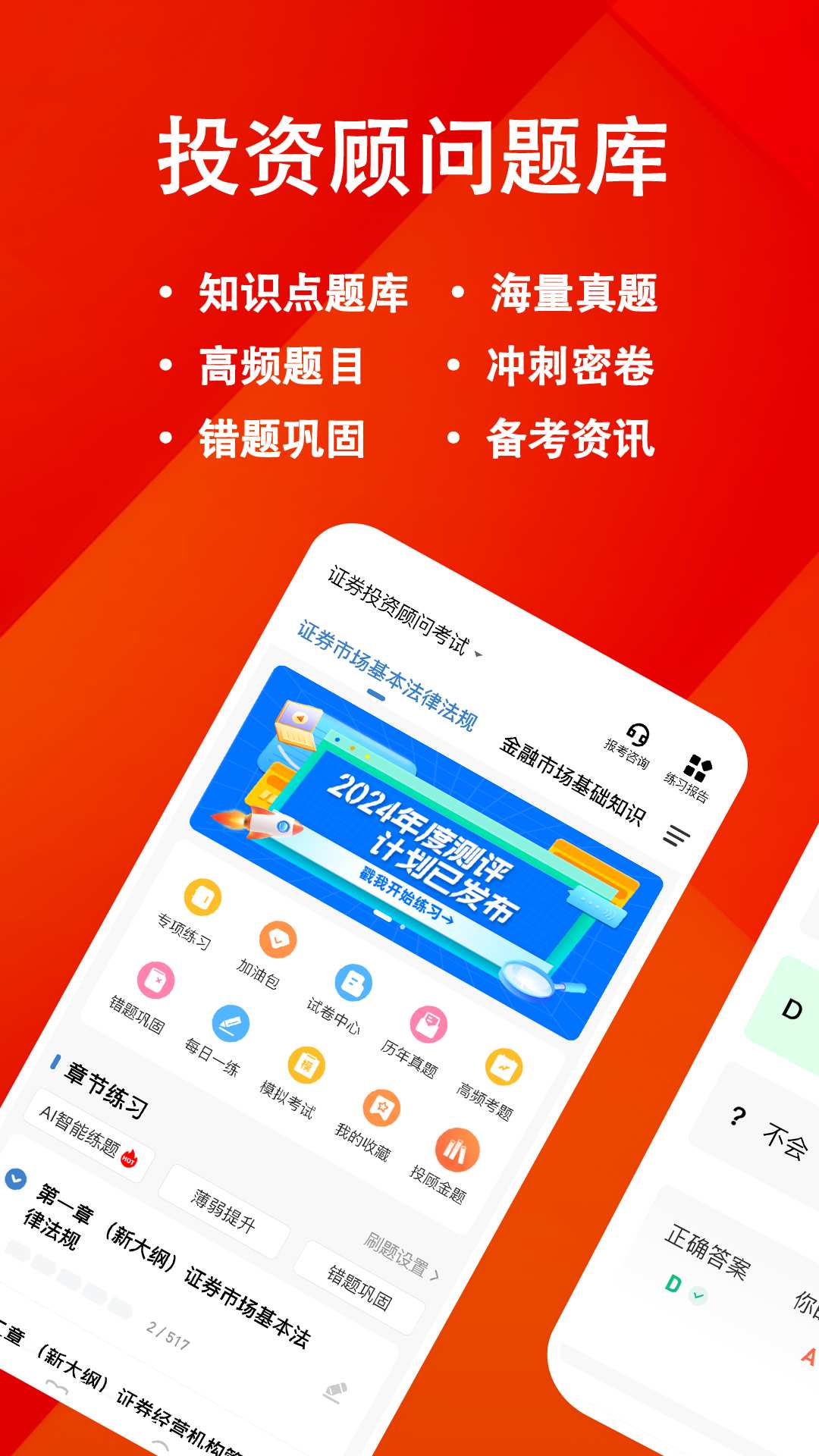 【章节练习】题库内所有证券投资顾问相关科目的章节练习均可随意使用。