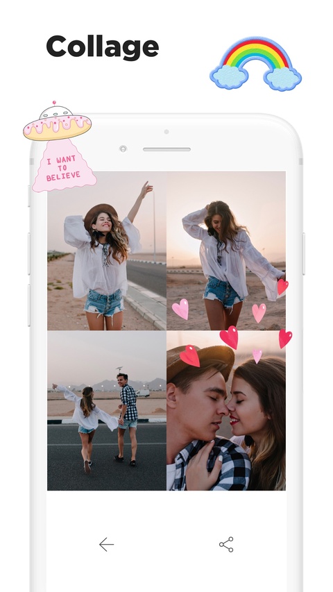 6、紧跟时代潮流,近50种可爱卖萌,靓丽,搞怪等超丰富个性贴图效果一键免费使用;图贴随意缩放,移动。