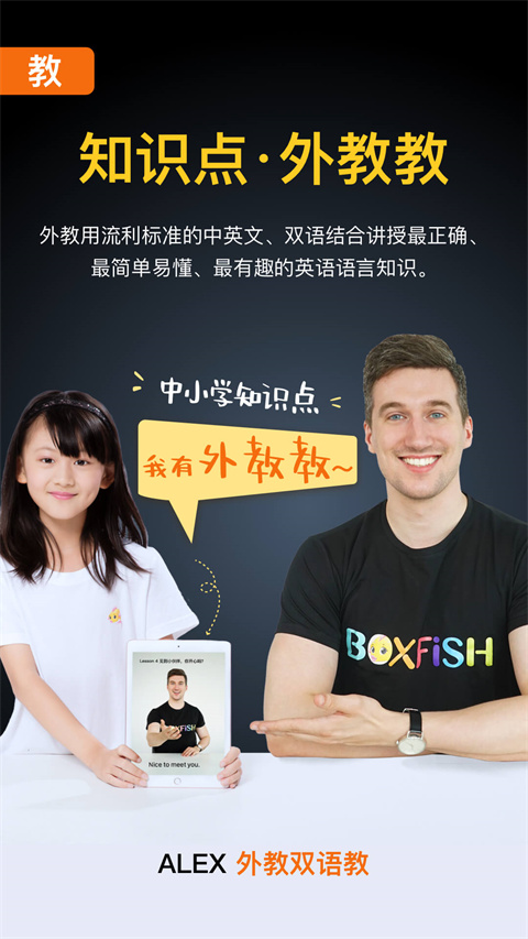 BOXFiSH盒子鱼英语ipad版的在线课堂不仅彻底超越了视频聊天为主的传统在线教育,更因为其拥有最优秀的中外教、一对一的良好互动和最先进的课程体系,学习效果更是远远超越了传统培训。