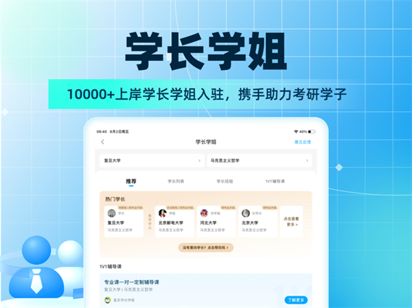 学长学姐与你分享考研经验,考神学霸与你分享复习经验!语音听讲,高分学长语音教你如何复习专业课。不知院校专业怎么选?找不到考研真题?学长学姐通通帮你解决