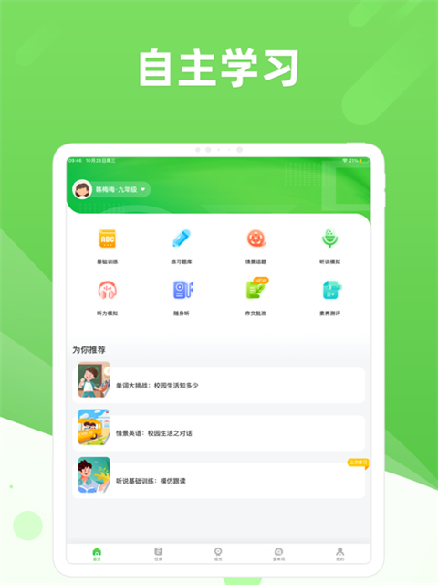 学生可以在任何时间和地点轻松学习,配合学校英语课程,让学生拥有更多的自主学习的空间和时间。