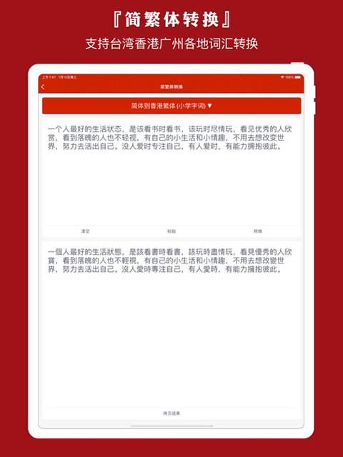 3、简繁体转换,支持香港、台湾常用词汇简繁转换