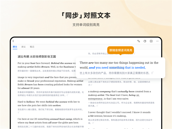 3、拥有每天更新的海量听力库,并独家提供智能语音高亮跟随功能