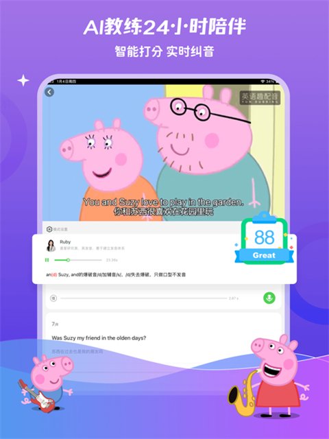 6、配音打分:新增配音打分,只能语音识别打分,有记录才有提高。让孩子的口语从此无忧。带上小伙伴们一起坐上提高口语的小火箭~