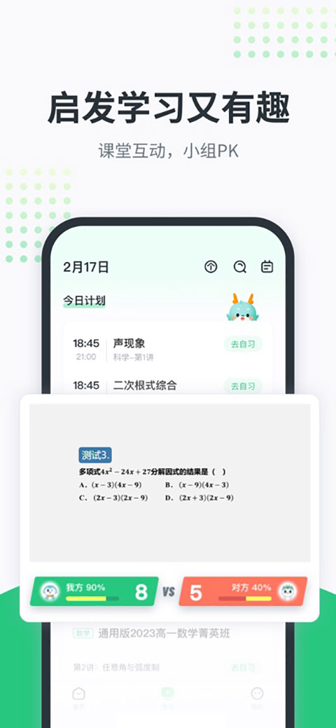 提供直播课程和点播课程,直播课堂同时在线听课人数已突破1500人。点播课程的资源不断更新,涵盖中学阶段各个科目的全部知识点,提供体系化和同步化的学习课程。